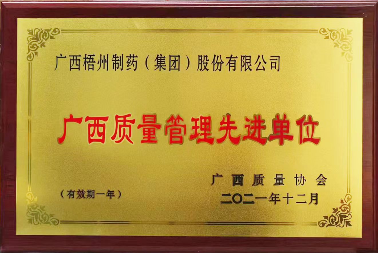 榮獲2021年廣西質量管理先進單位稱號