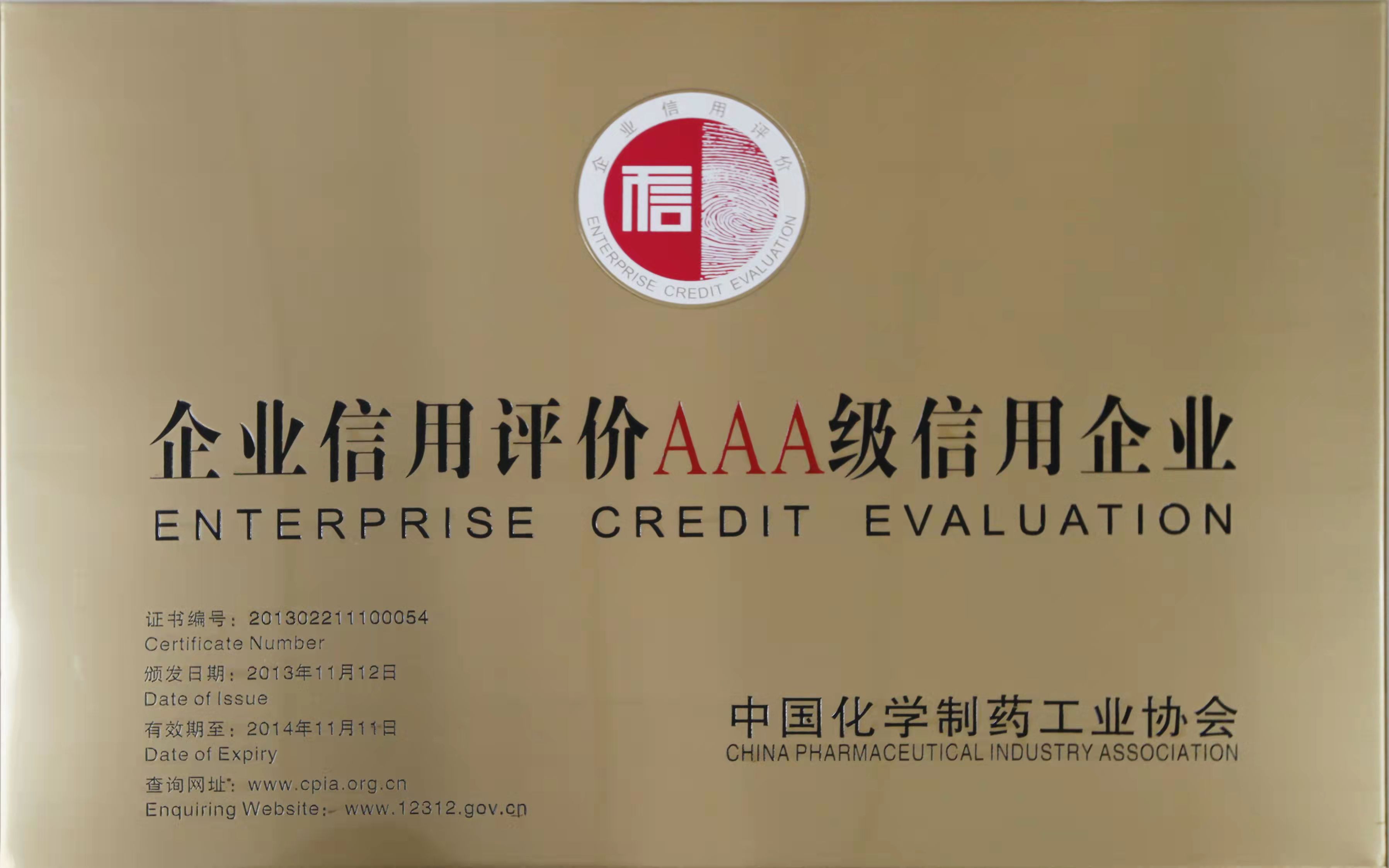 評(píng)為企業(yè)信用評(píng)價(jià)AAA級(jí)信用企業(yè)