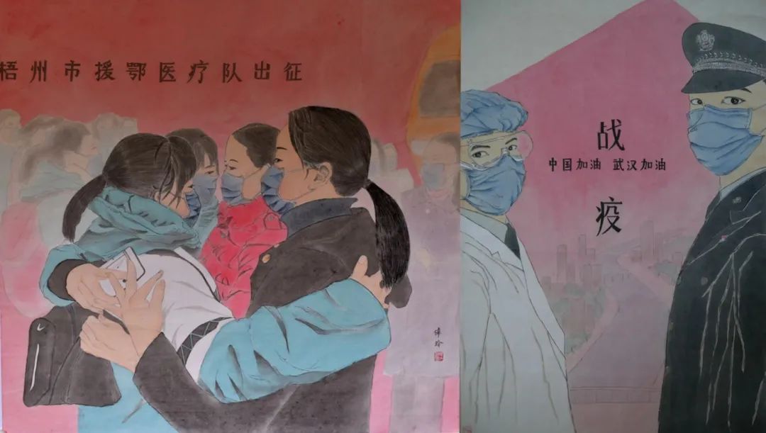2020年初新冠肺炎疫情期間馮偉玲還創(chuàng)作了國(guó)畫(huà)《戰(zhàn)疫》《最美逆行者》《感恩》等畫(huà)作,向抗疫英雄們致以崇高的敬意,作品入選廣西女書(shū)畫(huà)家協(xié)會(huì)舉辦的網(wǎng)上展。她用畫(huà)筆描繪出一幅幅祖國(guó)欣欣向榮、人民生活和諧幸福的美好畫(huà)作。