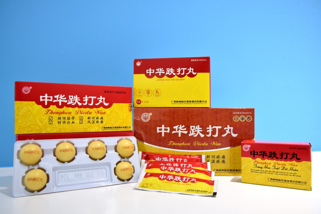 百年傳承發(fā)展路,新時代綻放新光彩。中華跌打丸源于南少林寺古方,其制作技藝在梧州傳承與發(fā)展的過程中融入了民間智慧,運用傳統(tǒng)中醫(yī)辯證論治,遵循四氣五味、君臣佐使、正治反治的獨特法則,采用32味中草藥經(jīng)清洗、干燥、粉碎、煉蜜、混粉、制丸等20多道工序制成,對挫傷筋骨,新舊瘀患,風(fēng)濕疼痛,創(chuàng)傷出血療效卓著。經(jīng)過多代人的不斷傳承、創(chuàng)新和技術(shù)攻關(guān),中華跌打丸譽滿全國,被列為國家中藥保護品種,獲“中華老字號”產(chǎn)品稱號,享有“中華民族醫(yī)藥瑰寶”的美譽,為傳統(tǒng)中醫(yī)藥發(fā)展歷史提供了標(biāo)志性范本,具有重要的歷史價值。