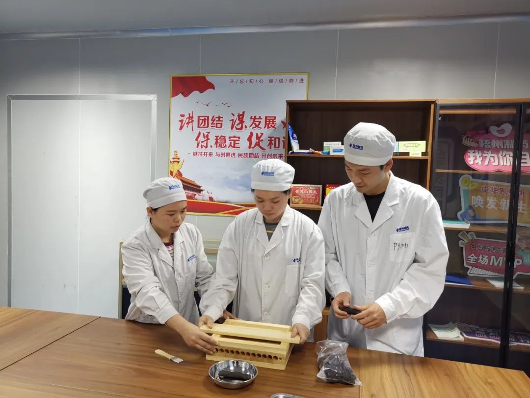 作為“中華跌打丸制作技藝”非遺項(xiàng)目的第五代傳承人,雷潔萍對(duì)于團(tuán)隊(duì)人才的培養(yǎng)尤其重視,2021年創(chuàng)立了 “雷潔萍勞模工匠人才創(chuàng)新工作室”,帶頭開(kāi)展非遺技術(shù)保護(hù)、帶徒傳藝、工藝革新、崗位練兵等工作,每年開(kāi)展至少200場(chǎng)專(zhuān)業(yè)技能培訓(xùn)。她還利用多種形式,如青年宣講會(huì)、培訓(xùn)會(huì)等進(jìn)行質(zhì)量管理小組知識(shí)、質(zhì)量工具運(yùn)用的經(jīng)驗(yàn)分享,引導(dǎo)青年員工運(yùn)用系統(tǒng)、科學(xué)的方法進(jìn)行質(zhì)量改進(jìn)活動(dòng),不斷創(chuàng)新,全面提升產(chǎn)品質(zhì)量。